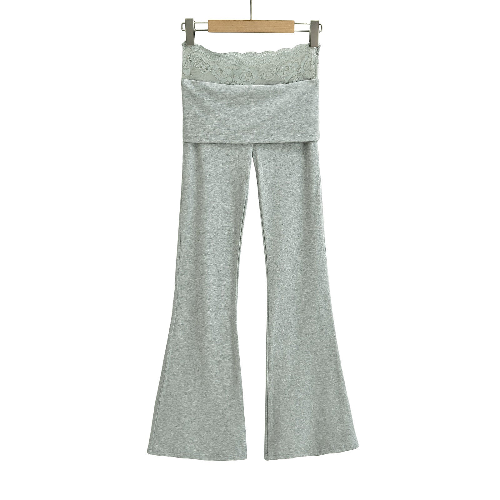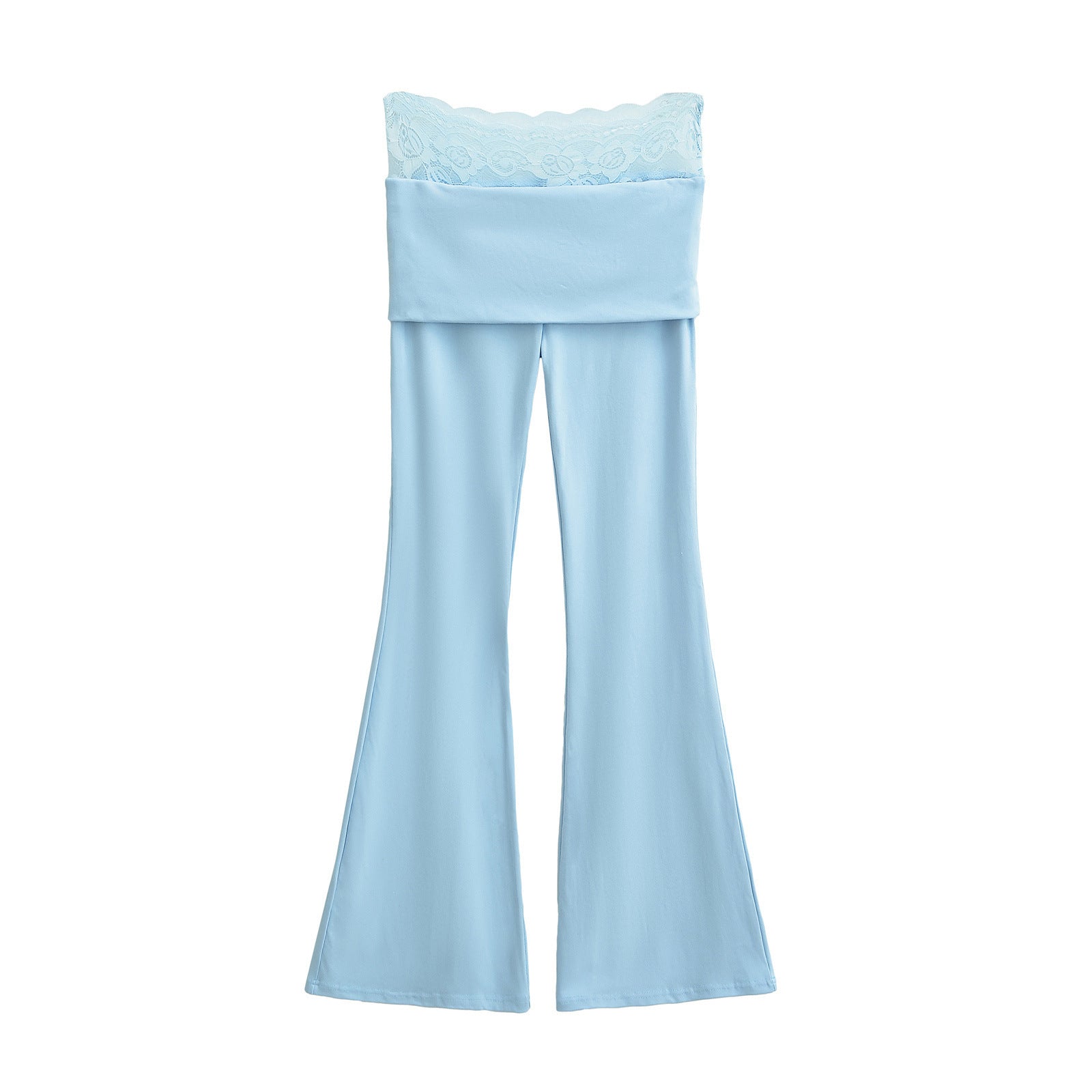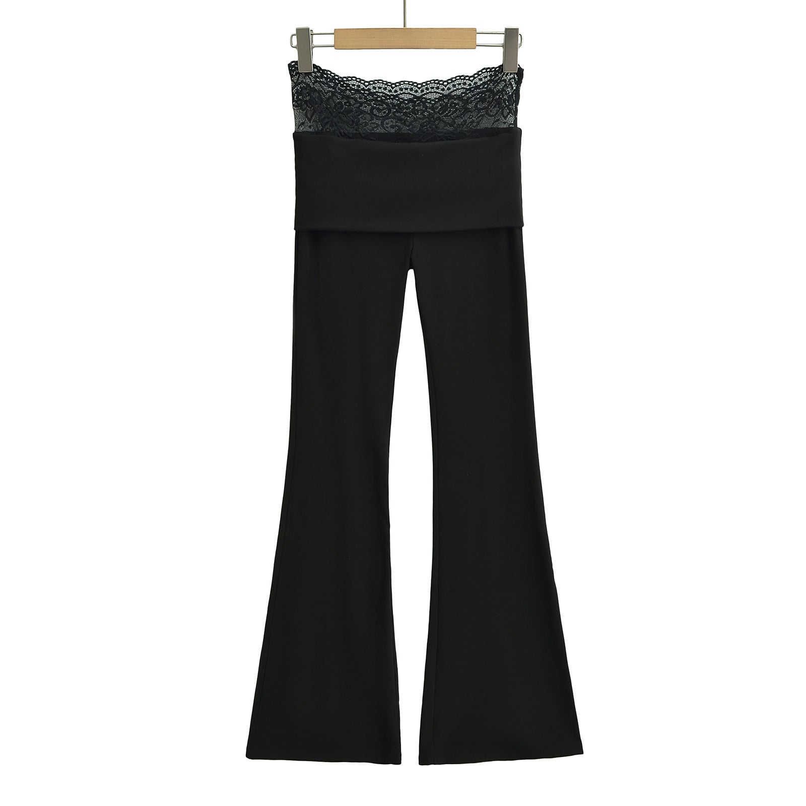 High waisted lace patchwork micro flared pants