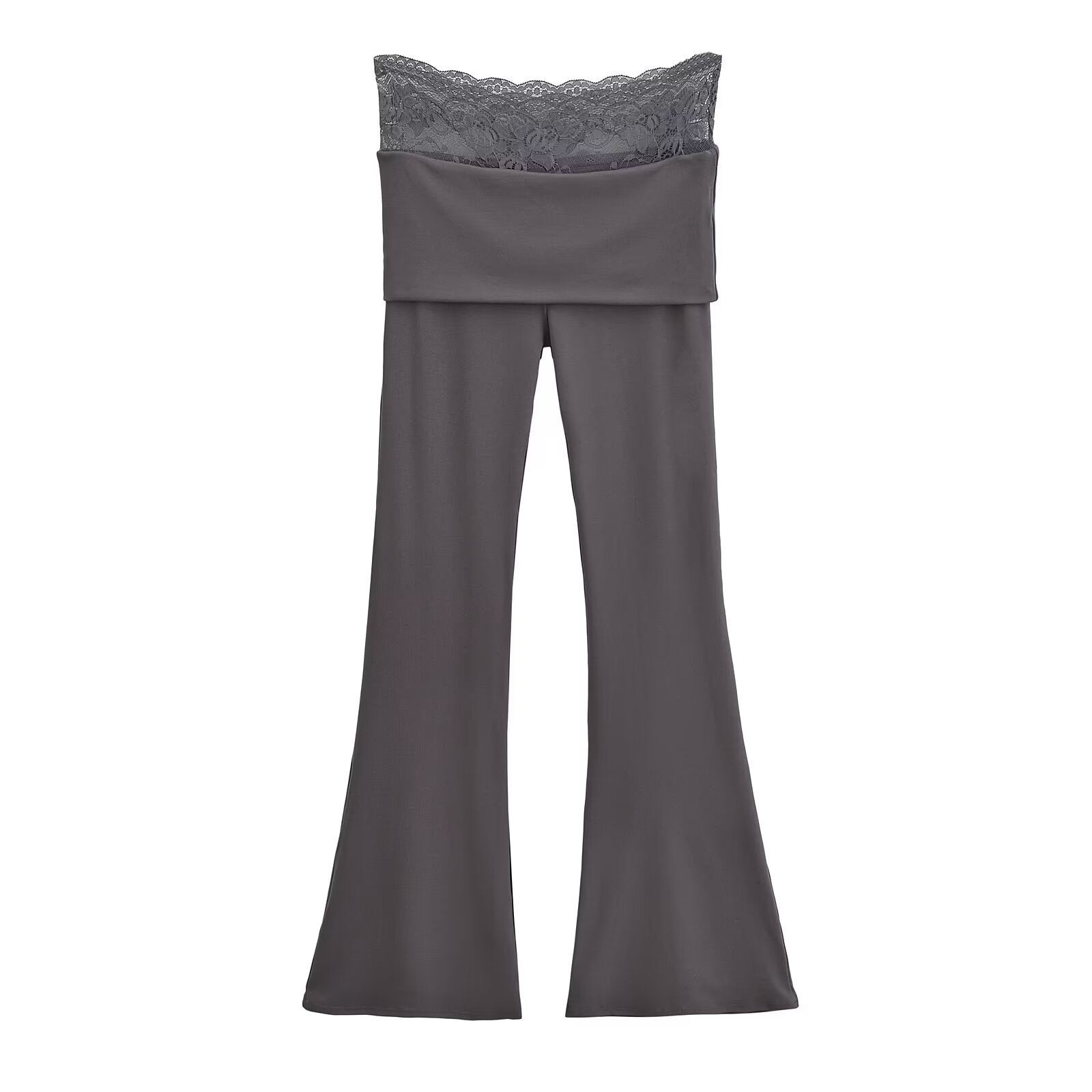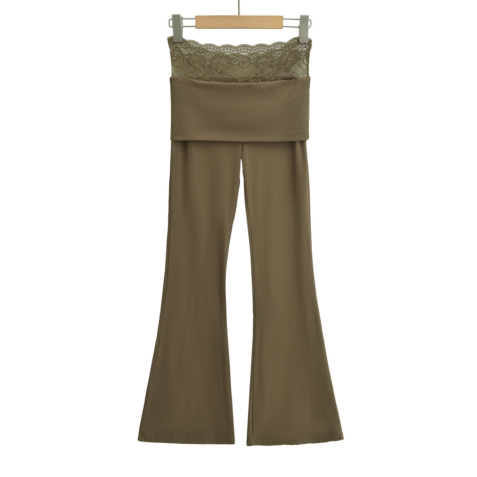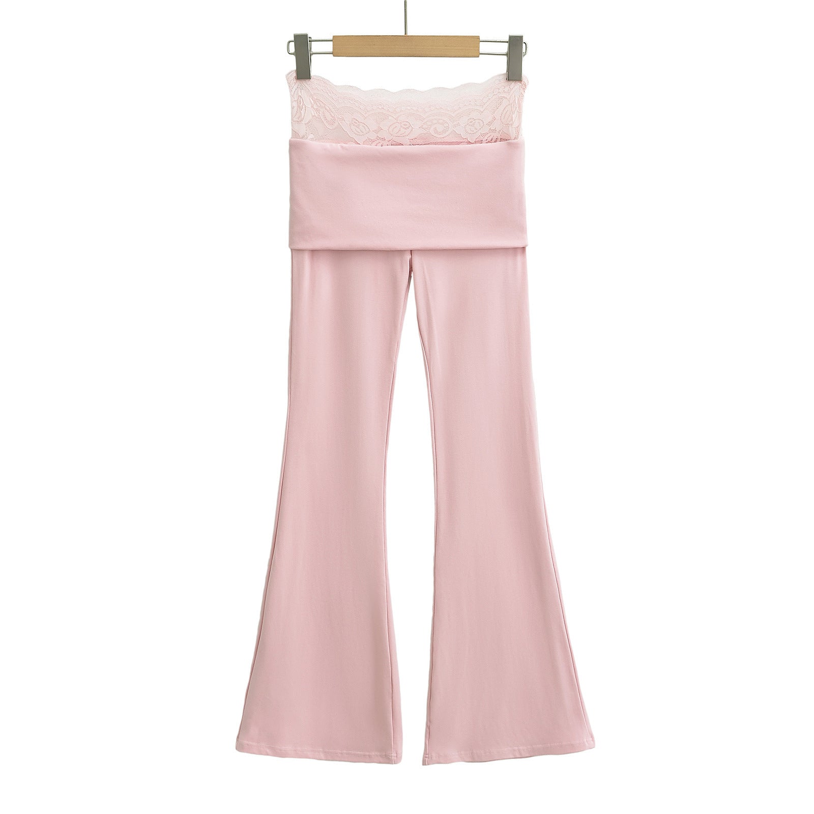 High waisted lace patchwork micro flared pants